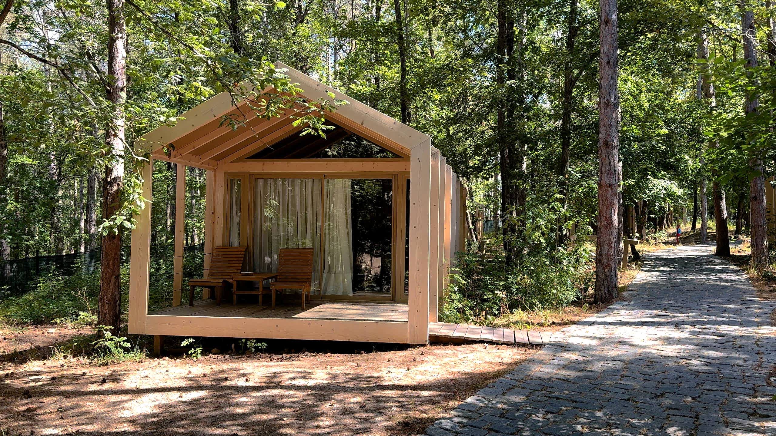 Kaplumbağa Plus çadırlarımızda ek ücret dahilinde evcil hayvan konaklaması yapılabilmekte olup, 3+1 şeklinde 4 kişilik konaklamalara uygundur. (3 yetişkin 0-11 yaş arası 1 çocuk) Bu alanlarımız tesisimizin en konforlu alanları arasında yer almakta olup kullanılan çadır kumaşları ısı-ses yalıtımını sağlayan özel nefes alan kumaş olması doğanın her halini kusursuz bir şekilde yaşamanızı sağlamaktadır. Aynı zamanda orman içerisinden veranda keyfini yaşamanıza olanak tanıyan bu alanlarımız sizlere ev konforunda doğanın tadını çıkarmanız için dizayn edilmiştir.